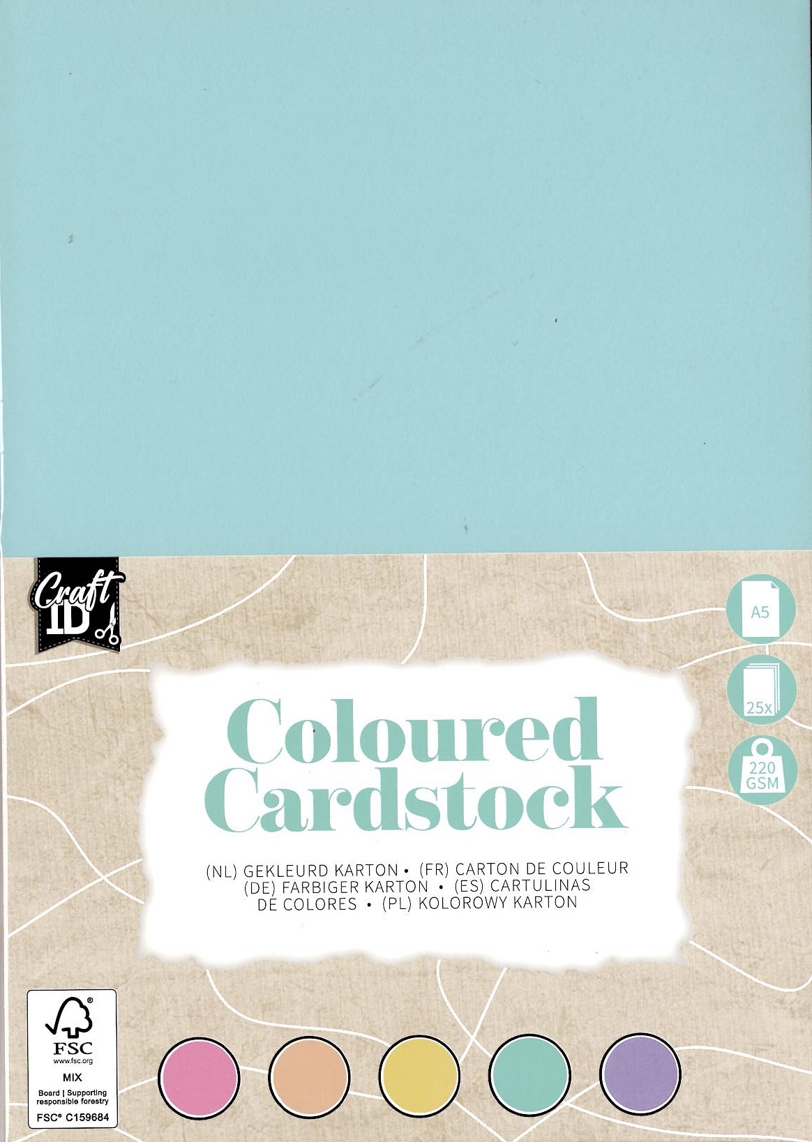 Barevný papír A5, 220g/m2 - 25 listů pastelové barvy