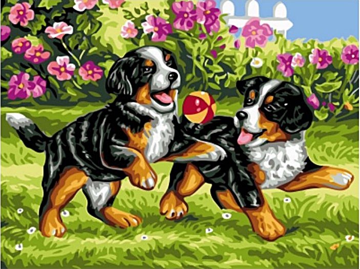 Diamantový obrázek - Hravá štěňátka 30x40cm