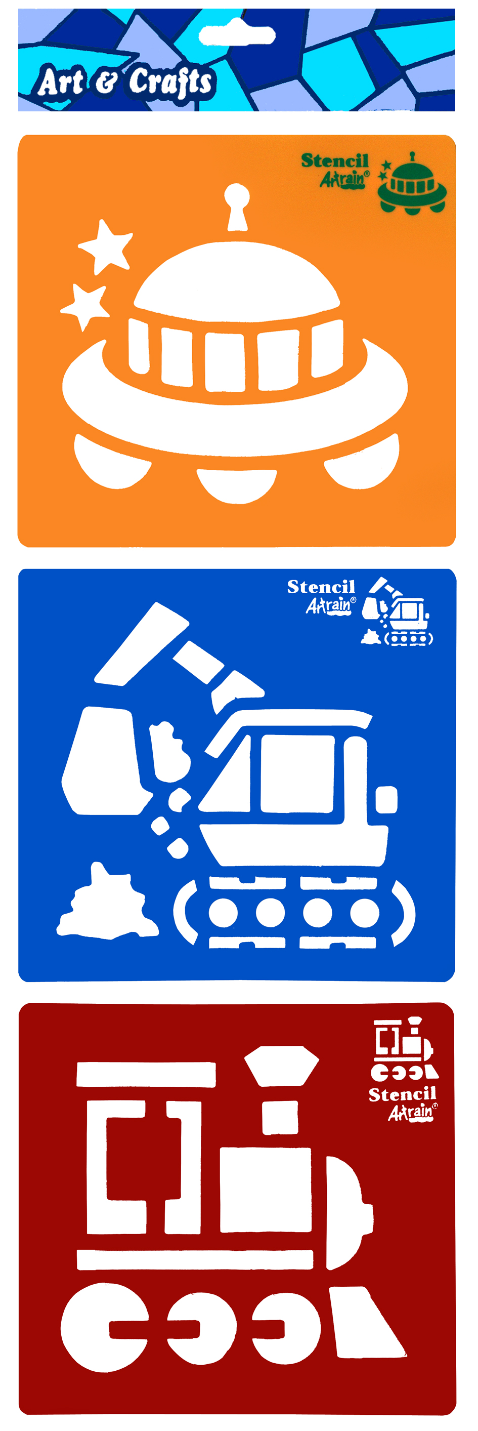 Šablony 3 ks- ufo, bagr, lokomotiva